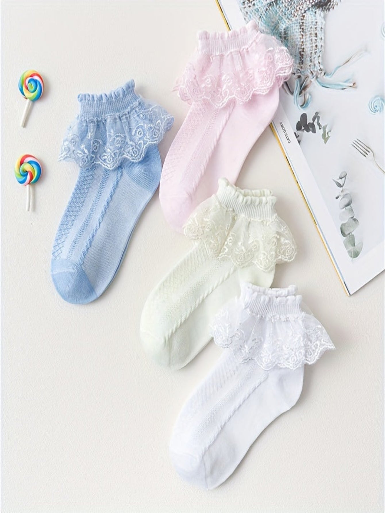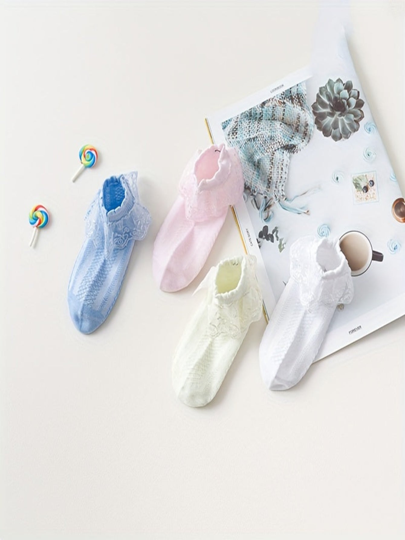 4 Paar Rüte Rüschenverkleidungs -Crew, atmende komfortable Tanzprinzessins Socken atmen